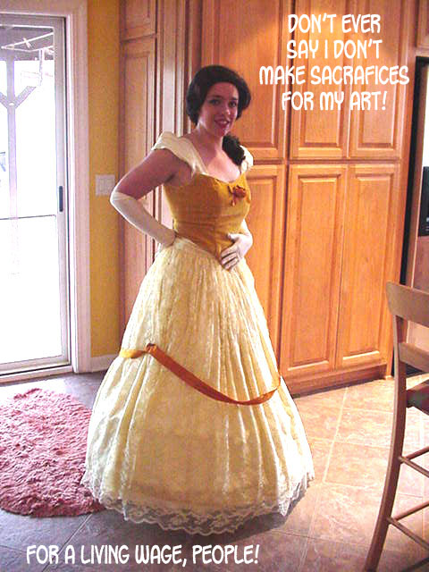 The many costumes of Glych while working at the costume shop.