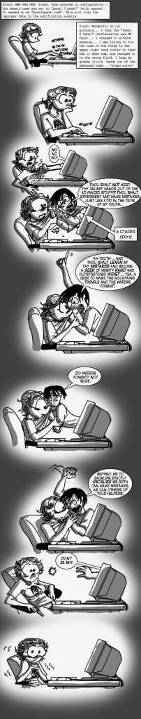 I miss Sford. We haven’t talked to each other in a long time. This comic was from the time of IRC chats and before Facebook expisted.