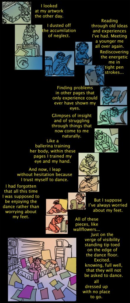 As an artist progresses, looking back at their past art is interesting for them because they’ve gotten better and see all of the flaws in the work back when they were proud of what they had made. I’m doing that again right now. But progress is important to note. I still love this comic.